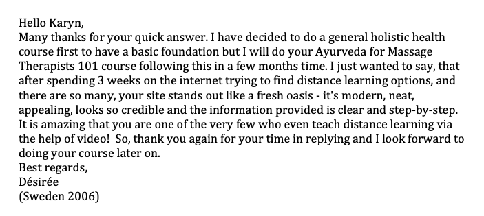 This course includes custom-made PowerPoint presentations for every chapter. Each presentation includes a summary of the chapter’s contents and connections to Ayurvedic principles, making it specially tailored for yoga teachers and Ayurvedic counselors.